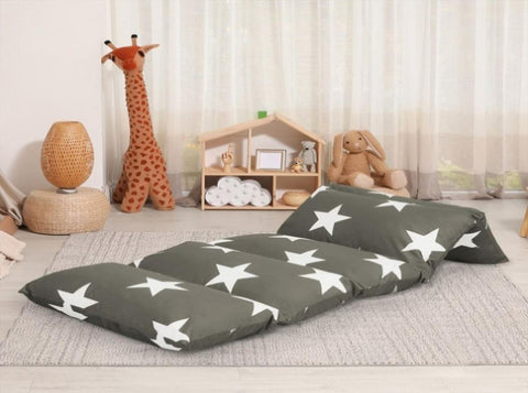 Set up a reading space on the carpet with your floor pillow lounger. Give your kid a comfy place to read books. Use their large floor pillow in their bedroom or in a corner of your loungeroom.