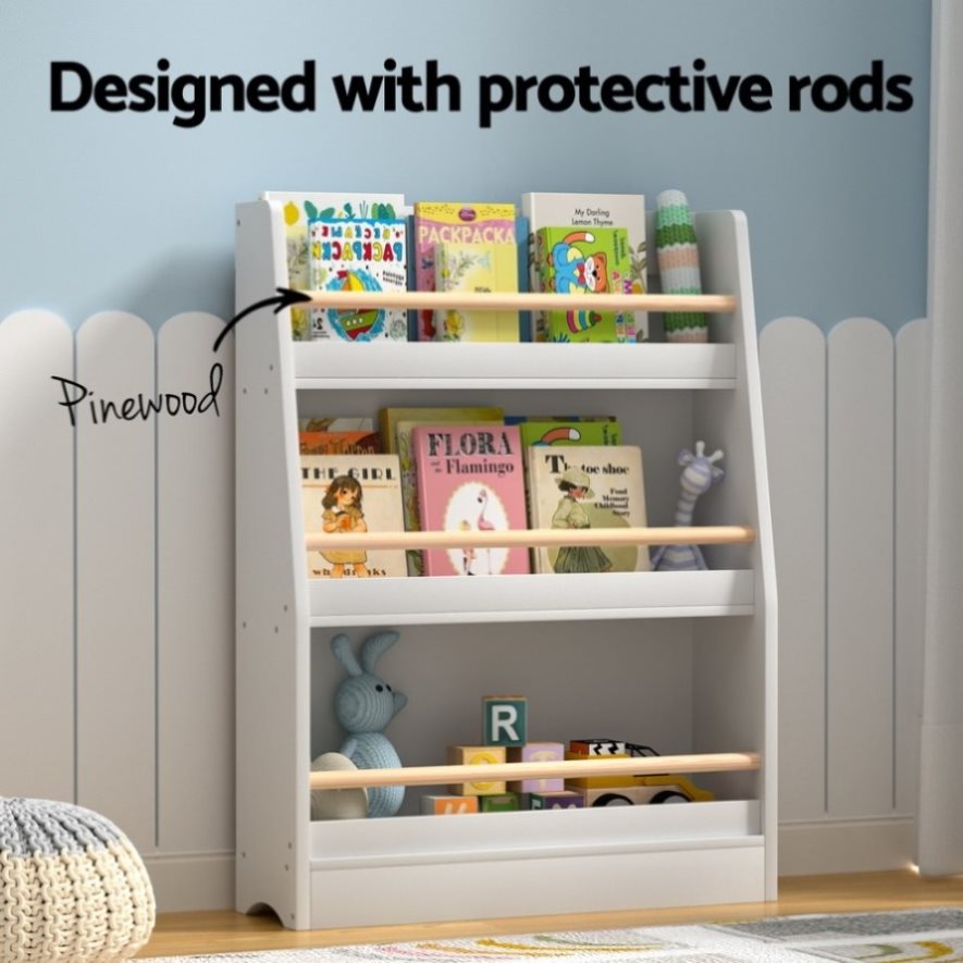 Keezi Kids Bookshelf 3 Tiers Storage Children Bookcase Organiser Display Shelf FURNI-B-BOOK-3T-WH