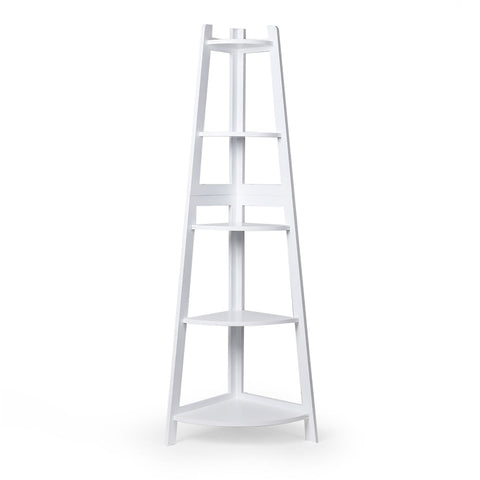 Levede 5 Tier Corner Shelf Wooden Storage White BO1013-WH_NZ