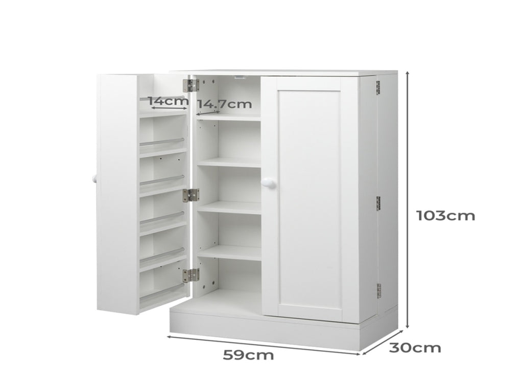 Store all your bowls, cups, plates, mugs and more. Push open the doors to your white sideboard and store spices on the door shelving. Need more storage Get yourself a second sideboard.