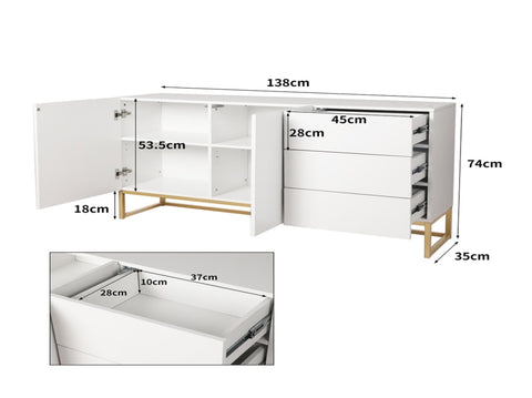 Levede Buffet Sideboard Storage Cabinet White CH1078-WH_NZ