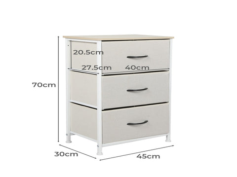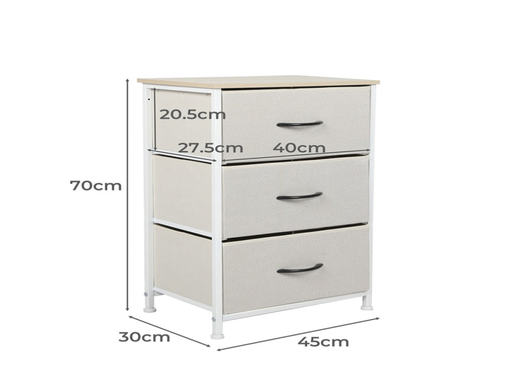 Levede Chest of 3 Drawers Bedside Table Beige CH1051-CR_NZ