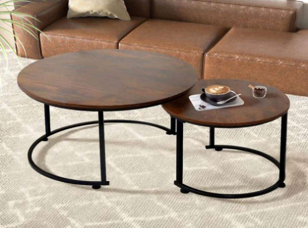Upgrade your home with the Levede nesting coffee table set β a perfect balance of style and practicality. Featuring a rustic wood grain surface and matte black metal frame, this round coffee table set adds a modern to any space. The small coffee table easily slides under the large coffee table, making it an ideal space saving coffee table solution for compact rooms.