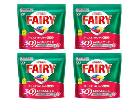 4x Fairy Platinum Plus Lemon Dishwasher Tablets 60pk (240 Tablets)