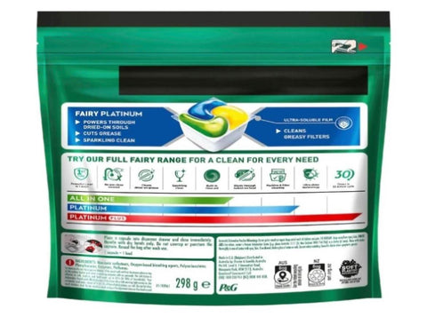 Fairy Platinum All-in-One Dishwasher Capsules deliver a powerful clean in a single wash—no pre-rinse required. Designed to tackle tough, baked-on food and greasy residues, these capsules also help clean your dishwasher’s filter while leaving dishes sparkling. With built-in rinse aid and machine care technology, they offer convenience and performance in every cycle.