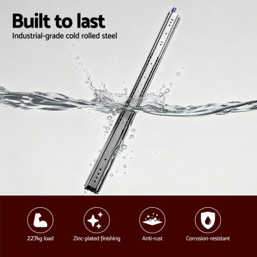 Giantz 2x Drawer Slides Full Extension Locking 227kg 914-1829mm Length DS-76MM-914-SI