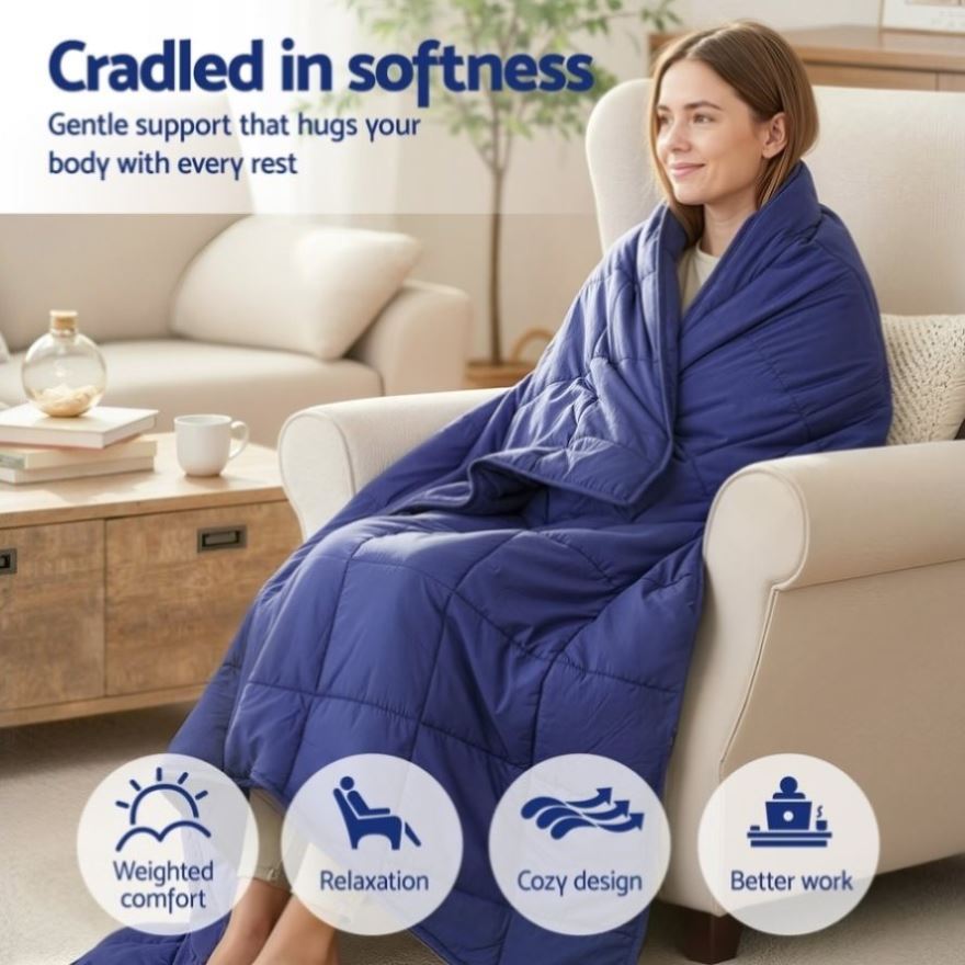 Discover deeper, more restful sleep with the Giselle Bedding Weighted Blanket. Crafted with a premium microfibre cover, it offers exceptional softness and breathability, keeping you comfortable all night. The innovative 5-layer structure locks in high-density glass beads for stable weight distribution and long-lasting durability. With Deep Touch Pressure Stimulation (DTPS), the blanket evenly applies gentle pressure to stimulate pressure points, helping calm your body and mind. Designed to adapt to your body shape and posture, it enhances relaxation while improving overall sleep quality. Finished with secure stitching and four-band edges, this weighted blanket is not only effective but built to last—perfect for home, travel, or relaxation time.