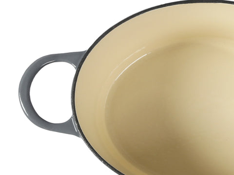 Take good care of your enamelled Dutch oven by hand washing it. You can wash it almost anywhere but don’t put your pan in the dishwasher. Avoid leaving it sitting in water.