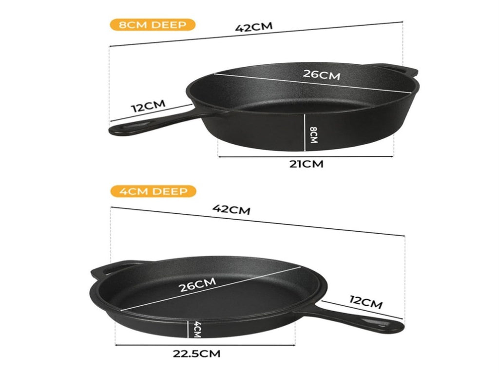 Cook like a pro with the Toque cast iron frying pan set. This premium non stick frying pan set includes a 26cm shallow pan and a 26cm deep pan that combine into a compact Dutch oven—perfect for both indoor and outdoor cooking.