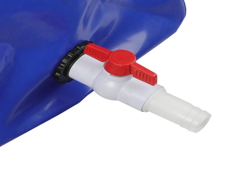 Connect up a hose to the inlet on your box type water bladder. Add on the air vent. Make sure the tap is closed. Fill it up. Replace the air vent with the screw cap. Now you can adventure with water.