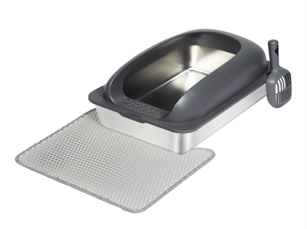 The arc-shaped, open design promotes airflow, reducing odor buildup for a fresher environment. Equipped with a widened double-layer mat, it filters out stray litter to keep floors mess-free. With a large 20L capacity and a 15cm high splash guard, it’s perfect for reducing litter scatter—even in multi-cat households. Plus, the anti-slip pads on the base ensure stability.
