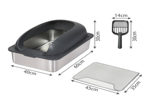 Upgrade your cat's litter experience with this premium Stainless Steel Cat Litter Box, designed for easy maintenance and a cleaner home. Made from durable, washable stainless steel, this litter box prevents litter from sticking, making clean-ups quick and hassle-free.