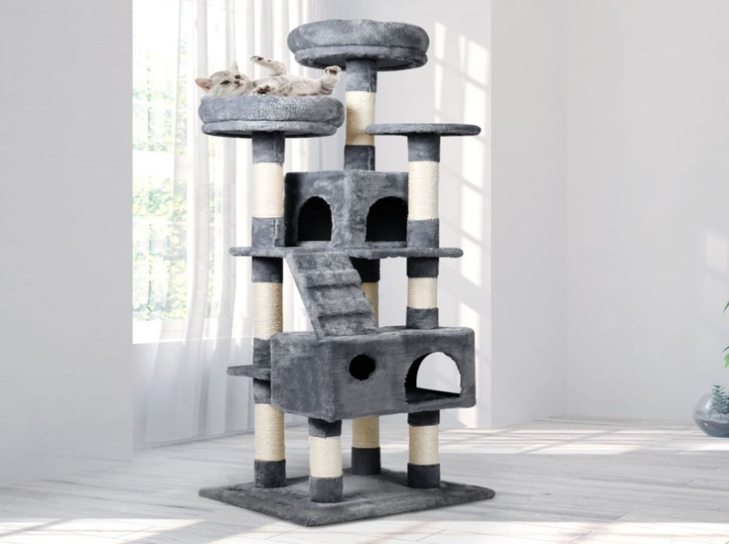 Watch your furry friends perform darnedest things with our exquisitely built Cat Tree. A perfect play area for your cats to jolly. Cats love climbing, jumping around with burst of excitement! With its specially structured multi-layers, this cat tree does not limit their happiness. A unique cat-friendly design that engages revitalizing playtime with a place to rest. Let your cat crave its natural instincts such as practicing hunting, enhancing its reflex, or scratching to mark its territory. Your cat must nurture its inner capabilities to tackle real-life situations when they go around exploring. Your cat�s very own private getaway!