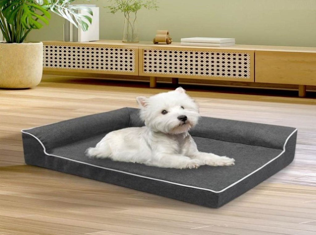 The unique L-shaped bolster sofa bed design offers additional support for your pet's neck and head, promoting deep, restorative sleep. The surrounding bolsters not only provide a sense of security but also allow your pet to snuggle comfortably and relax fully.