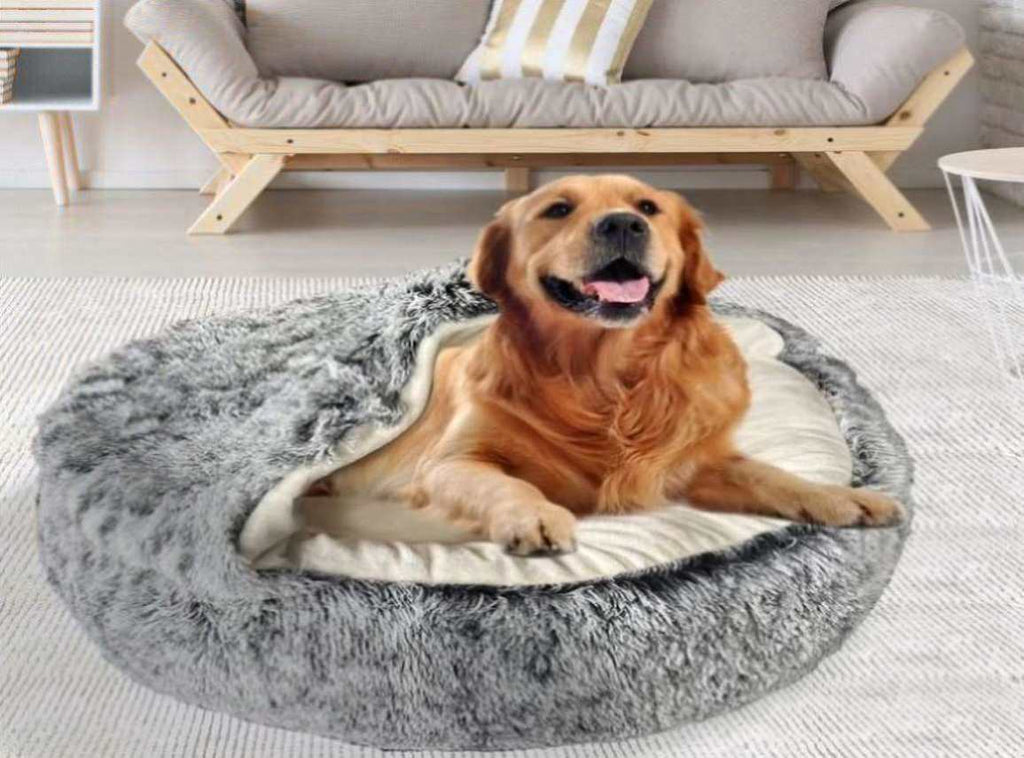 Pick the right pet cave bed for your cat or dog. We have sizes that suit all cats and many dogs. Snuggle down like they are in a sleeping bag. Pets stay warm this winter with this snuggly bed.