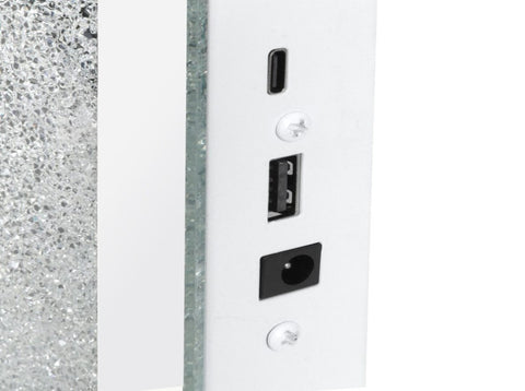 Strategically positioned on the right side of the mirror are a USB port and a TYPE C charging port, making it a convenient charging station for personal devices. Adding to its versatility, the mirror also comes with a 9-centimeter 5x magnifying mirror, perfect for detailed makeup work or precision skin inspections.