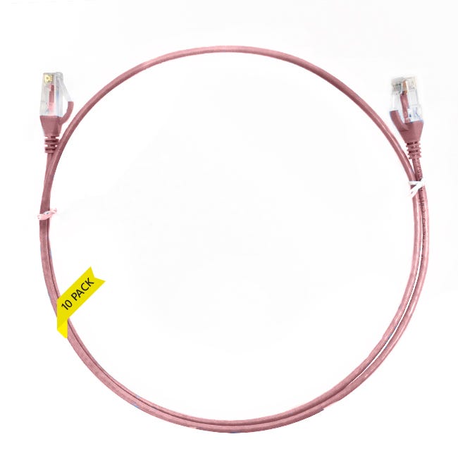 #html-body [data-pb-style=OKRG63O]{justify-content:flex-start;display:flex;flex-direction:column;background-position:left top;background-size:cover;background-repeat:no-repeat;background-attachment:scroll}The 4Cabling Ultra-Thin CAT6 Ethernet Network Cable. CAT6 cable commonly used where performance, reliability, and maximum speed are needed. 4Cabling new Ultra-Thin CAT6 cables are a great option for high density patch panel setup, where every bit of space matters. All 4Cabling network CAT6 cables are Fluke tested and are manufactured using gold-plated connectors which meet and exceed Australian industry standards. CAT6 features more stringent specifications for crosstalk and system noise. Cable standard provides performance up to 250MHz and is suitable for from Fast Ethernet, Gigabit Ethernet and 10-Gigabit Ethernet.FEATURES 100% Copper 8 multi-strand conductors in 4 twisted-pair T568A colour-coded configuration Fitted with 50μª Category 6 compliant 2-row (staggered pin) plug Fully moulded strain-relief boot Low-profile flush moulded boots Strong and robust male-to-male connectors Low Smoke Zero Halogen (LSZH / LS0H Jacket) reduces the amount of corrosive and toxic gases emitted during combustion SPECIFICATIONS Cable Type: CAT6 Ultra Thin Connector Type: RJ45-RJ45 Length: 0.5m Colour: Pink Qty in Pack: 10 Gauge: 28AWG Diameter: 3.6mm CERTIFICATIONS AS/CA S008:2010 ISO/IEC 11801 Category 6 TIA/EIA-568.2-D Category 6 WARRANTY3-years limited warranty