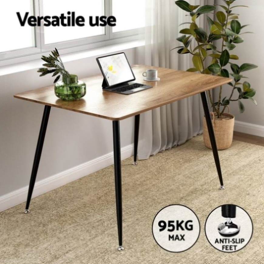 For a simple dining table that still delivers on style, the Artiss Caleb Dining Table is right for you. Made from thick particle board with a natural wood grain finish, the table is exceptionally affordable, durable, and will blend in perfectly with your existing décor. The dark wood tabletop is set atop solid powder-coated, anti-rust steel legs for an industrial-style look and feel. The table is scratch resistant and easy to clean and maintain thanks to the smooth, long-lasting surface.