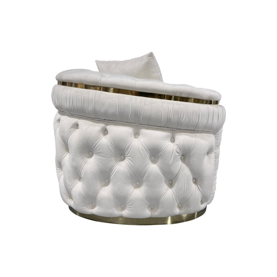 1 Seater Sofa Beige Velvet Fabric Solid Wood construction Gold Stainless Steel Trim V43-SOF-DUK1SBG