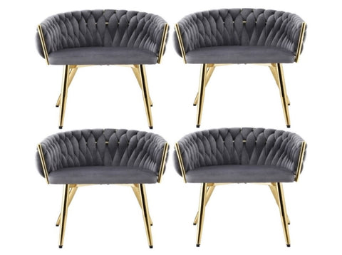 1 Set of 4 Artiss Dining Chairs Velvet Armchair Grey UPHO-C-DIN-01-VEL-GYX4