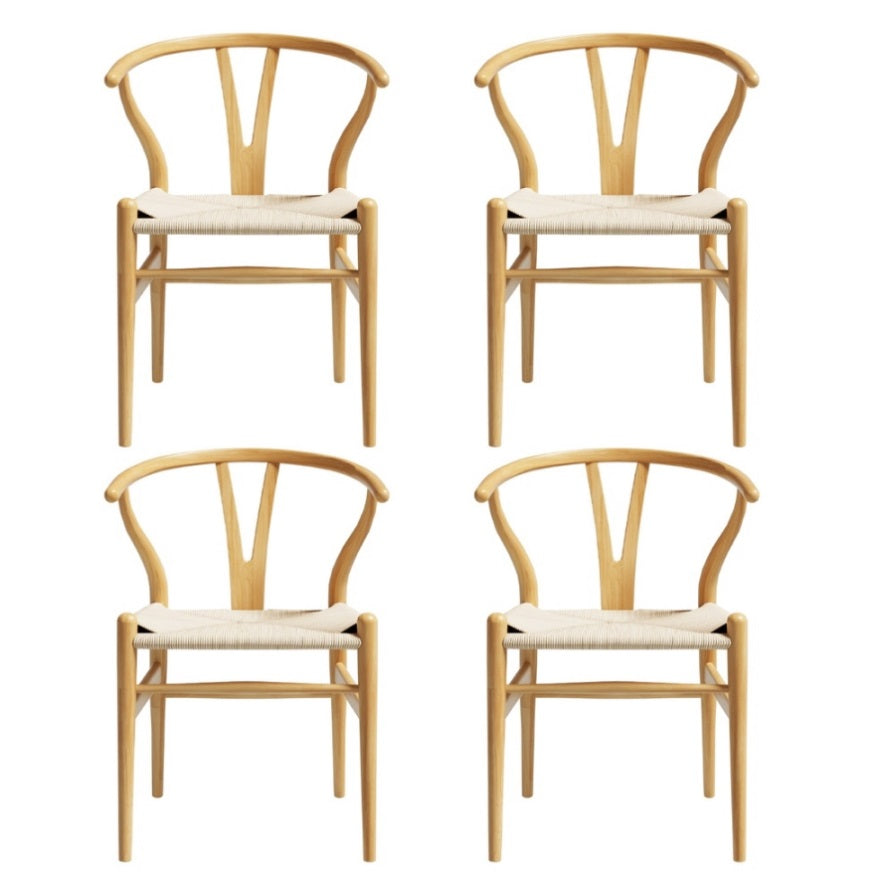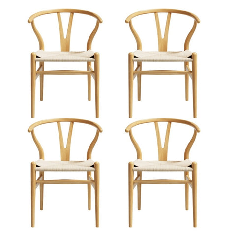 1 Set of 4 Artiss Dining Chairs Wooden Rattan Seat Wishbone Back MO-DIN-B-01-RAT-WDX4