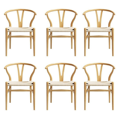 1 Set of 6 Artiss Dining Chairs Wooden Rattan Seat Wishbone Back MO-DIN-B-01-RAT-WDX6
