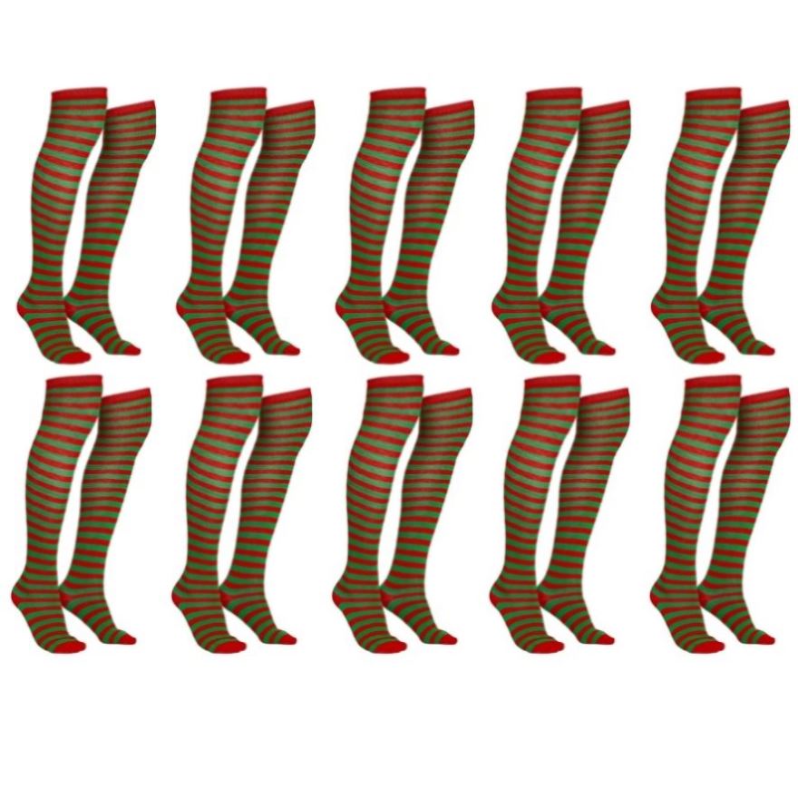 10x Christmas Over The Knee Socks Red Green Xmas Candy Cane Striped Elf Bulk V563-10PCS-CHRISTMAS_SOX