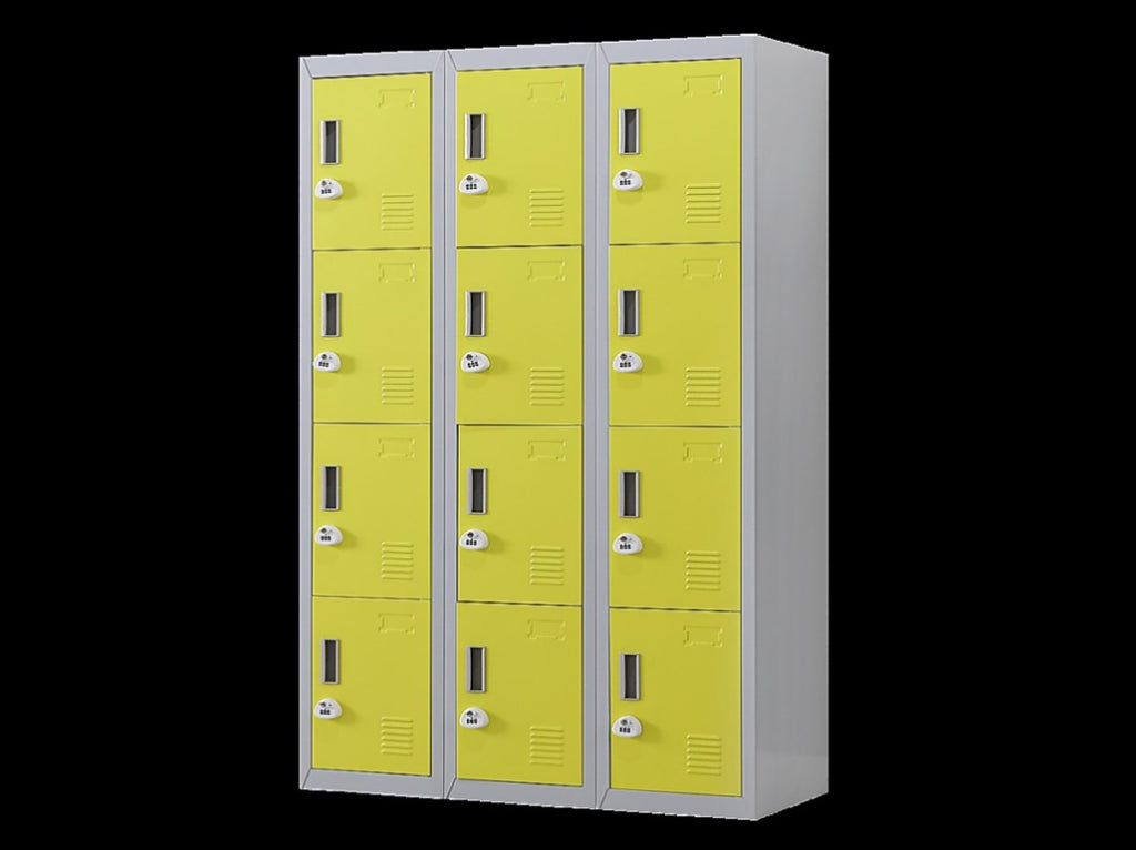 The unit has 12 individual locker compartments stacked in a 3 x 4 grid. Each locker provides ample space for personal items and can hold up to 30 kg. Built-in ventilations slits keep the stored items from smelling musty. Users may also customise their locker with a name tag or label in the designated slot provided. This comes comes with 3-digit combination lock to ensure safety of your belongings.