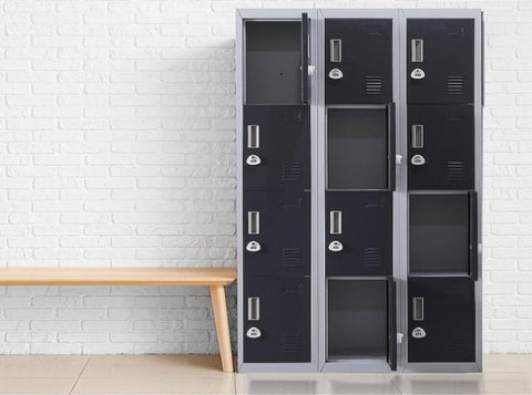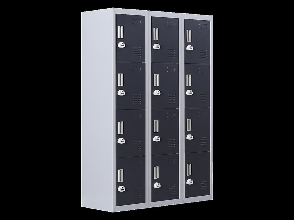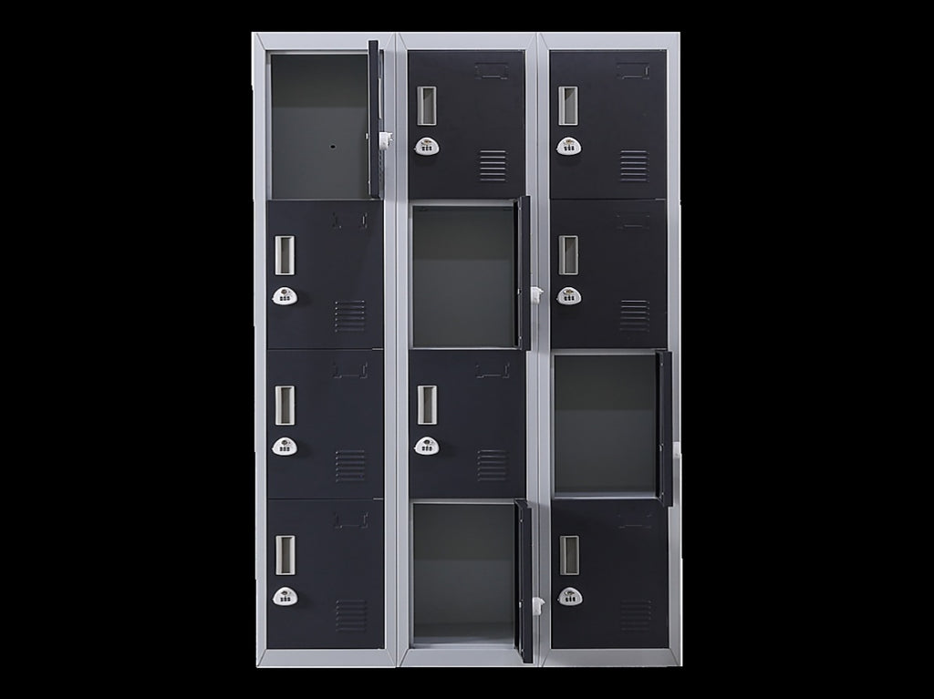 The unit has 12 individual locker compartments stacked in a 3 x 4 grid. Each locker provides ample space for personal items and can hold up to 30 kg. Built-in ventilations slits keep the stored items from smelling musty. Users may also customise their locker with a name tag or label in the designated slot provided. This comes comes with 3-digit combination lock to ensure safety of your belongings.