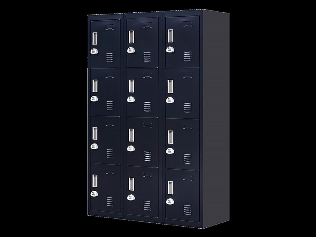 The unit has 12 individual locker compartments stacked in a 3 x 4 grid. Each locker provides ample space for personal items and can hold up to 30 kg. Built-in ventilations slits keep the stored items from smelling musty. Users may also customise their locker with a name tag or label in the designated slot provided. This comes comes with 3-digit combination lock to ensure safety of your belongings.