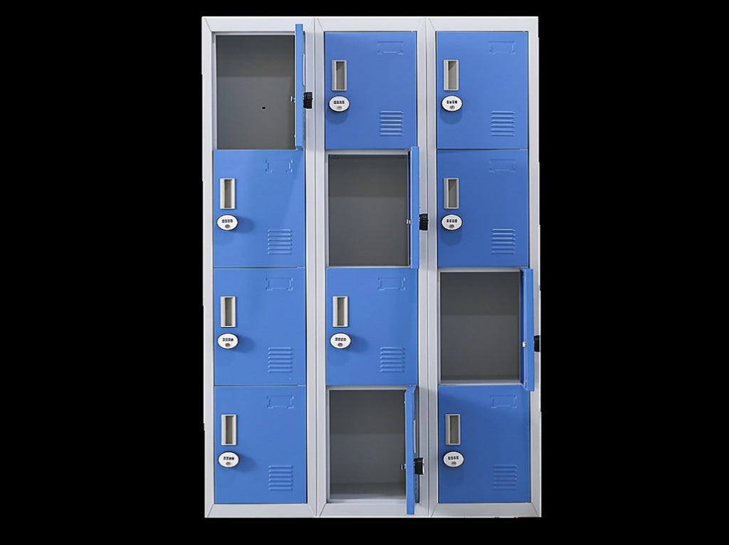 The unit has 12 individual locker compartments stacked in a 3 x 4 grid. Each locker provides ample space for personal items and can hold up to 30 kg. Built-in ventilations slits keep the stored items from smelling musty. Users may also customise their locker with a name tag or label in the designated slot provided. This comes comes with 4-digit combination lock to ensure safety of your belongings.