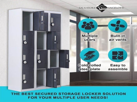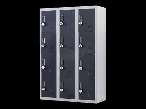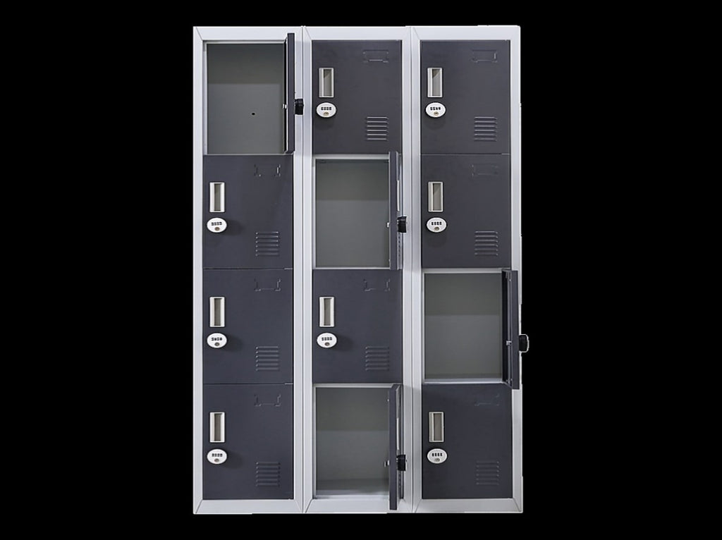 The unit has 12 individual locker compartments stacked in a 3 x 4 grid. Each locker provides ample space for personal items and can hold up to 30 kg. Built-in ventilations slits keep the stored items from smelling musty. Users may also customise their locker with a name tag or label in the designated slot provided. This comes comes with 4-digit combination lock to ensure safety of your belongings.
