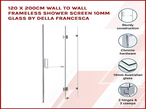 120 x 200cm Wall to Wall Frameless Shower Screen 10mm Glass By Della Francesca V63-831521