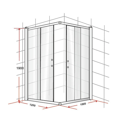 1200 x 1000mm Sliding Door Nano Safety Glass Shower Screen By Della Francesca V63-829561
