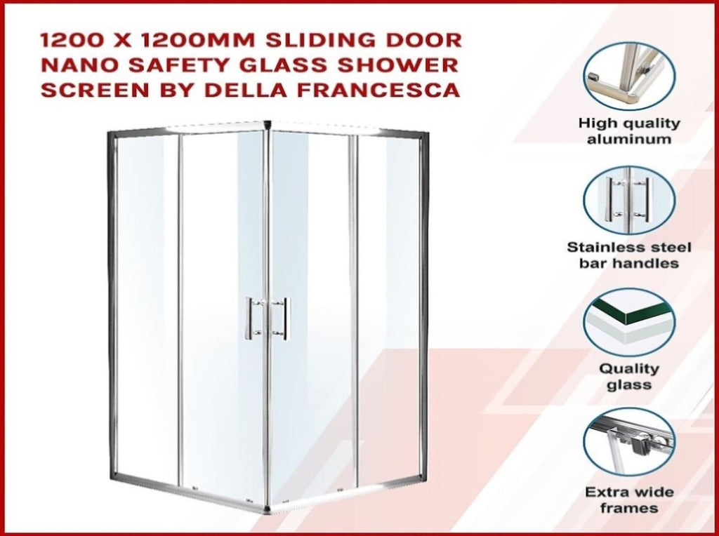 1200 x 1200mm Sliding Door Nano Safety Glass Shower Screen By Della Francesca V63-829411