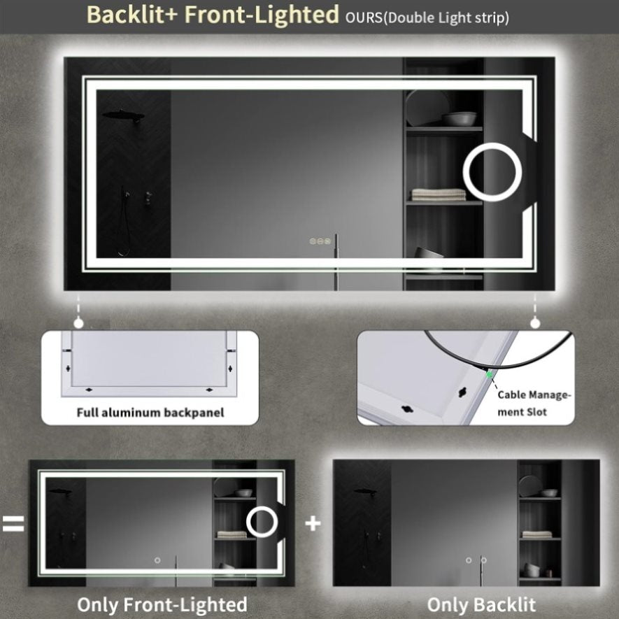 - Dual Lighting Innovation: Illuminate your bathroom ambiance with dual lighting options; front and back LED strips provide a powerful combined output of 6100 lumens, ensuring no shadows or glare disrupt your view.