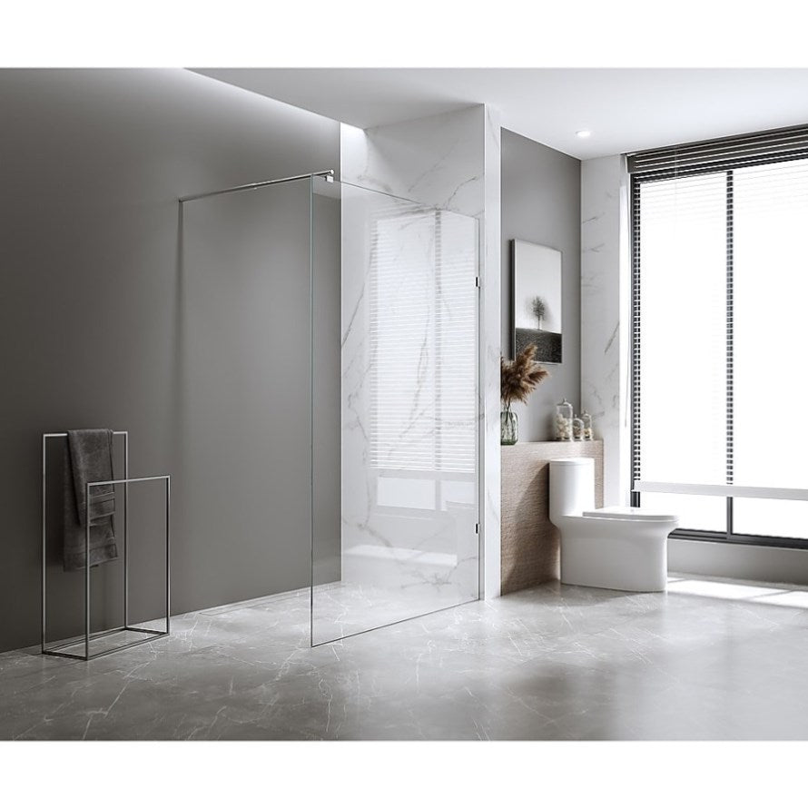 This single-panel screen is meticulously crafted from 10mm-thick toughened safety glass. Beyond its crystal-clear aesthetics, this glass is purposefully designed to guarantee absolute safety in the bathroom, adhering to Australia's glazing standards. The panel boasts dimensions of 1200mm in width by 2000mm in height. Ideal for both new constructions and renovations, this screen will truly elevate your bathroom. The best part You won't need to break the bank to achieve it! Secure yours today.