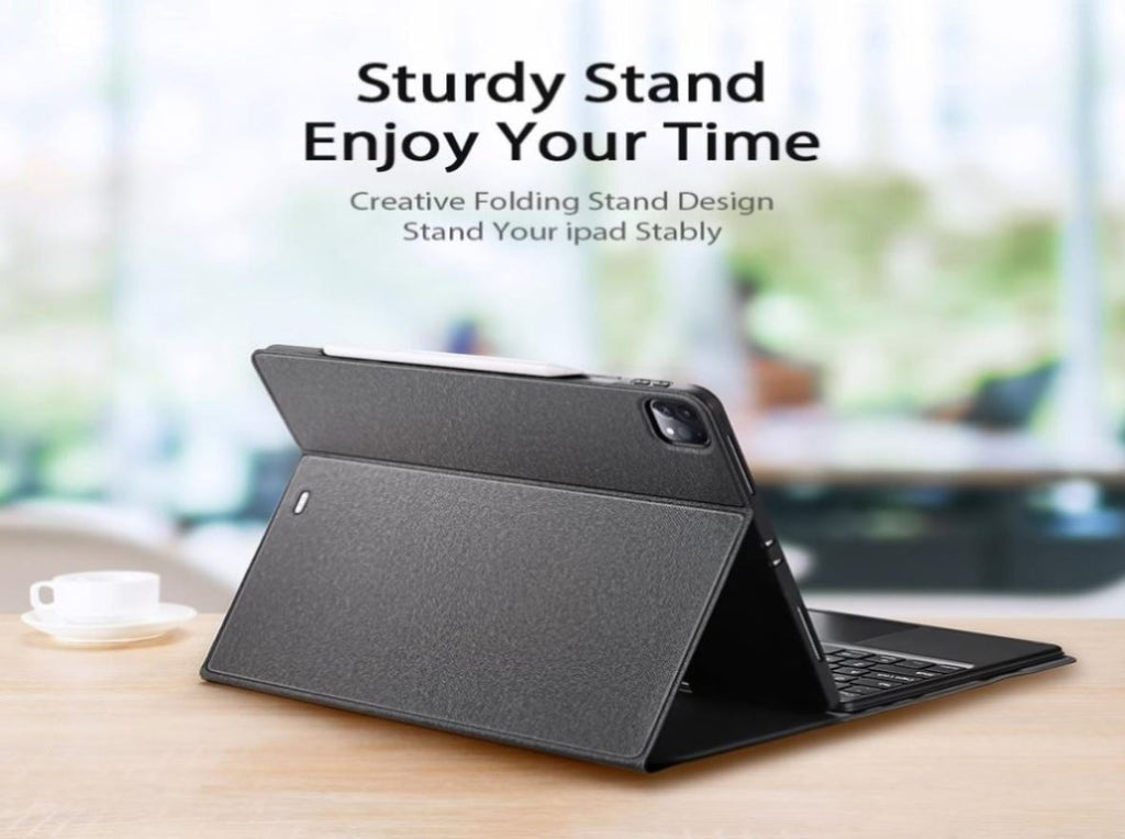 • 1 x Bluetooth Keyboard Leather Case With Touchpad & Smart Sleep Function For Ipad Pro 12.9 2020/2021/2022 Black