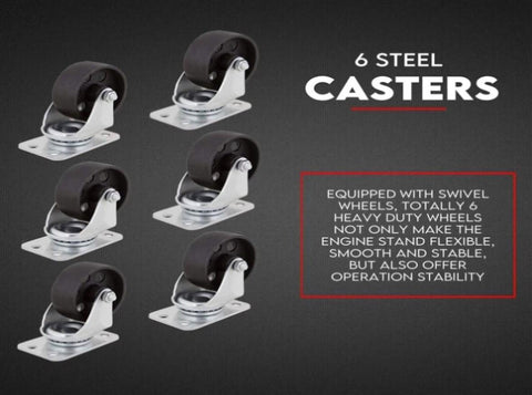 Wheels: 6 × Cast-iron swivel, 3.5" wheel size