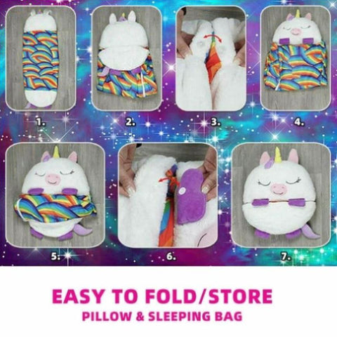 2. Zip up and snuggle up: In seconds Happy Nappers changes from the fun play pillow into a portable and fun sleeping bag with built-in pillow.