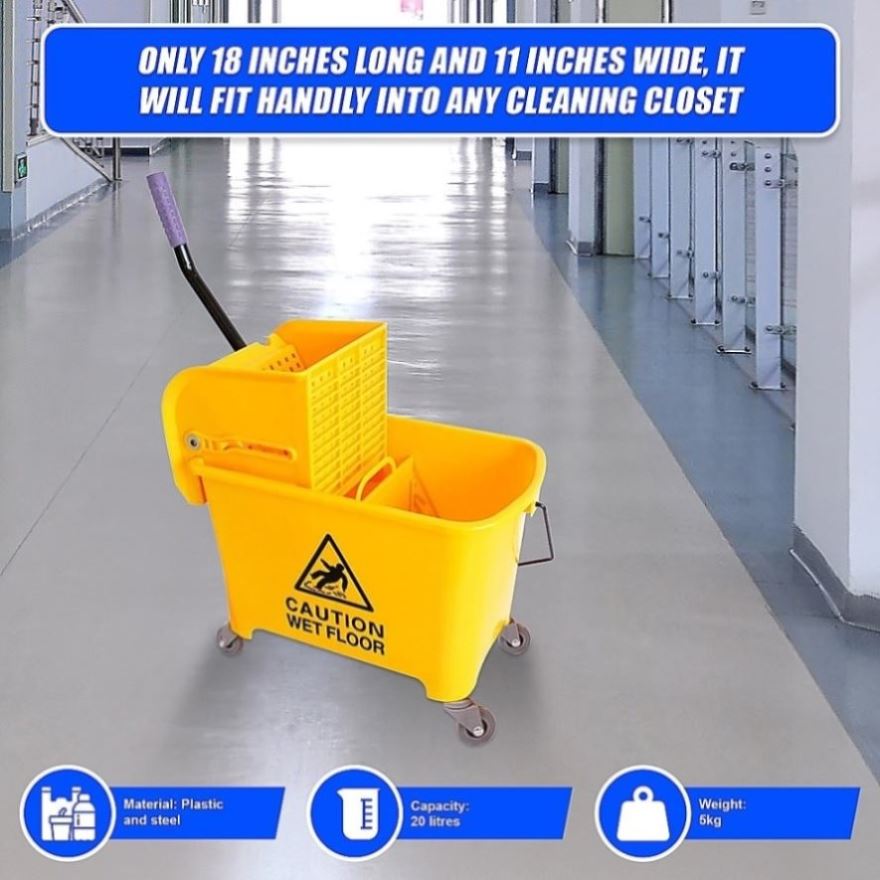 If you need a sturdy mop bucket to clean your place of business or your home, try this fine commercial-quality cleaning mop bucket with a built-in wringer from Randy Travis Machinery. Holding 20 litres, this mini-bucket is easy to manoeuvre around the areas you need to clean.