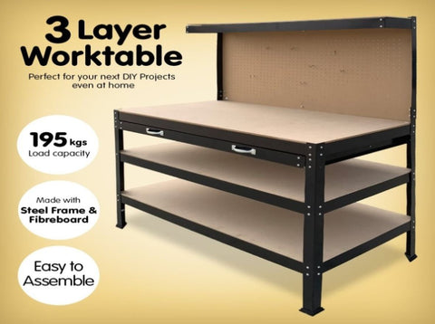 The included pegboard combined with a drawer make for an easy storage and organization solution for your tools and materials. Constructed of steel frame and MDF particle boards it can support up to 195kg of weight, providing you with a reliable work surface for all your various needs.