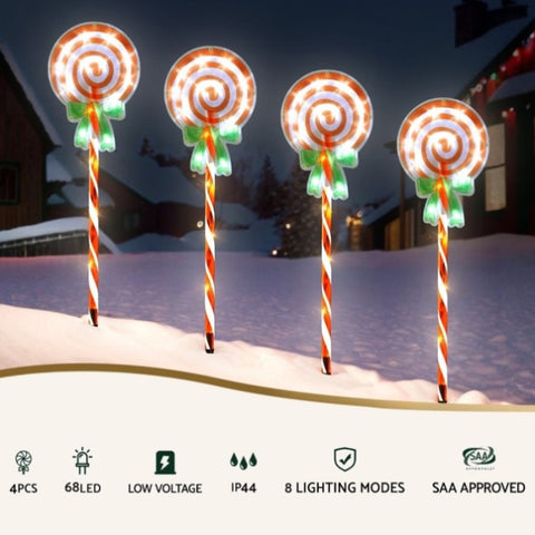 4 PCS Christmas Lights Path Ground Light Garden Decorations 68 LED Jingle Jollys XMAS-PATH-LOLLIPOP-RD-74CM-6PC