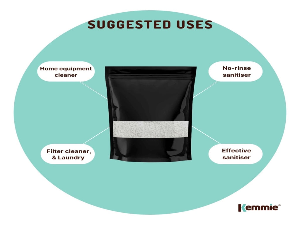 Sodium Percarbonate is a multi-purpose powder used in deck, carpet, household and laundry cleaning products. Also, used as a home brewing equipment cleaner and a mild no-rinse sanitiser.