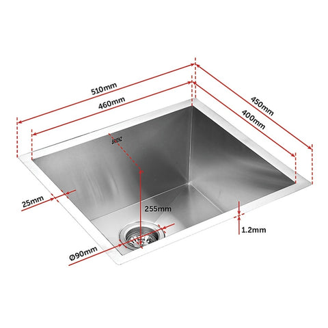 510x450mm Handmade Stainless Steel Undermount / Topmount Kitchen Laundry Sink with Waste V63-770055
