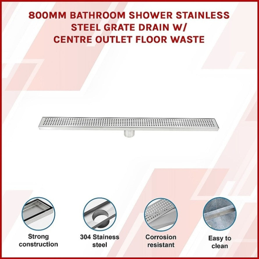 800mm Bathroom Shower Stainless Steel Grate Drain w/Centre outlet Floor Waste V63-832801