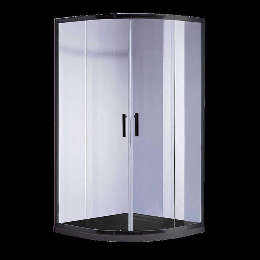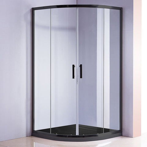 90 x 90cm Rounded Sliding 6mm Curved Shower Screen with Base in Black V63-830061