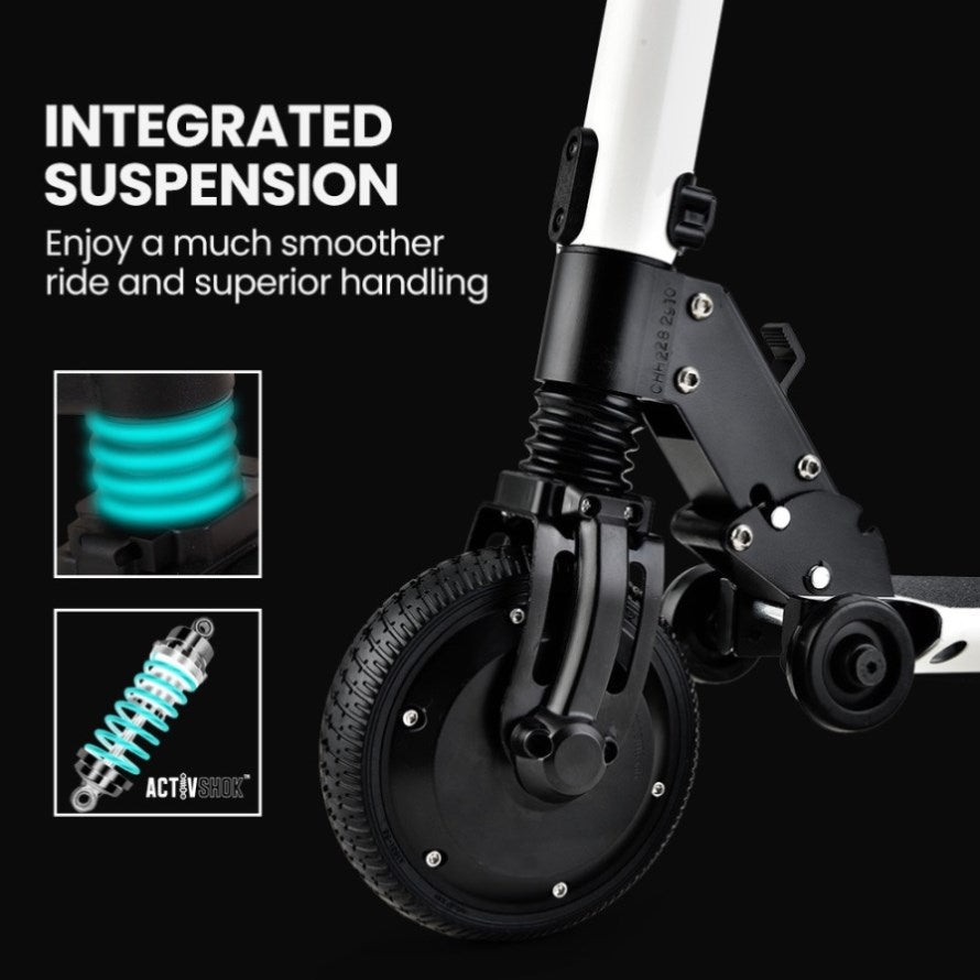 The frame size makes it suitable for both adults and teens and the long deck contributes better handling. The 6.5 inch airless puncture proof tyres are up to 30% larger than imitation products, and combine with the ActivShok™ suspension system to soak up the bumps.