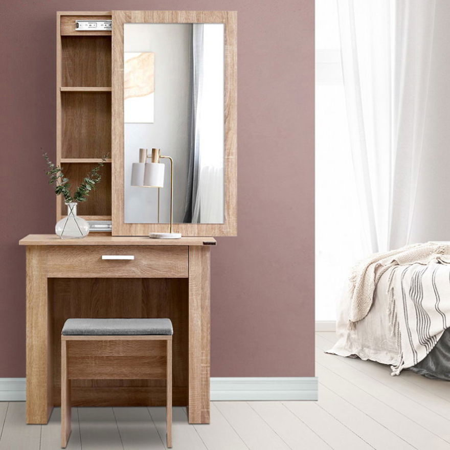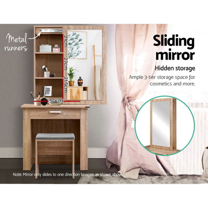 Artiss Dressing Table Stool Set Sliding Mirror Oak Demi FURNI-N-DRESS01-WD-AB