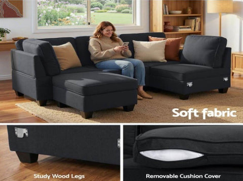 With the Artiss Modular Sofa Set, you never ever have to stick to one configuration. Its modular design allows you to configure the set to suit your space and style for easy makeovers. In fact, you can have up to five different combinations. It is like having a new sofa set every few months or whenever you feel like changing things up. To make the changeovers hassle-free, the classic design sofa set adopts a hoop and loop method with metal mounting fixings for easy use. Naturally, the faux linen fabric sofa is made with a sturdy wood frame and cushions padded with extra-thick foam for plush comfort. The seats are comfortable with wide armrests and ample support for your back too. Not least, the cushion covers are removable and washable for easy cleaning.